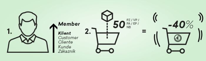 If the basket value reaches the level of min. 50 VP, the system will grant an additional discount, thanks to which purchases will be settled with a 40% discount.